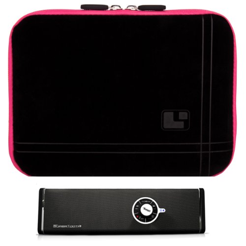 Keep your device protected at all time with this Stylish SumacLife Sleeve Cover. The SumacLife Sleeve features a fitted design for a snug, secure fit and soft, cushioned interior. The soft neoprene bubble padded interior cushions protects your device from bumps, dents, and scratches. The 4 way elastic corner restraint straps allow you to keep you device safely inside the sleeve and prevent it from falling out when of the case when opened. The dual zipper opening allows you quick and easy access to your device. It also keeps the cover firmly closed for maximum screen protection. The rear exterior pocket slot allows you to carry chargers, data cables, and memory cards along-side your device for convenience on the go. Exterior Dimensions 9.0 x 6 1/4 x 0.3 inches.Includes Supertooth Bluetooth Stereo The SuperTooth Disco is a Bluetooth multimedia speaker which can be connected wirelessly to a Bluetooth mobile phone, a PDA or to a Bluetooth enabled tablet. Once connected, you can stream stereo music from your phone or from your tablet to the SuperTooth Disco. The SuperTooth Disco can also be connected to most media devices and MP3 music players with the included 3.5mm stereo cable. Disco features a line input at the rear side of the frame. As you play your favorite music from your device to the SuperTooth Disco, experience best sound quality, clarity and powerful bass!