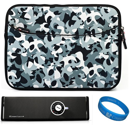 The Detailed Description of Gray Camo Design Neoprene Sleeve Protective Carrying Case Cover for Samsung Galaxy Tab 10.1 inch Android Tablet P7100 / P7500 / P7510 / SCH-I905 / SGH-T859 / Samsung Galaxy Tab 2 10.1 (Wi-Fi) 16GB Android Tablet (GT-P5113) + Supertooth Disco Bluetooth Stereo Speakers + SumacLife TM Wisdom Courage WristbandFeatures