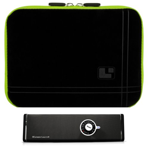Keep your device protected at all time with this Stylish SumacLife Sleeve Cover. The SumacLife Sleeve features a fitted design for a snug, secure fit and soft, cushioned interior. The soft neoprene bubble padded interior cushions protects your device from bumps, dents, and scratches. The 4 way elastic corner restraint straps allow you to keep you device safely inside the sleeve and prevent it from falling out when of the case when opened. The dual zipper opening allows you quick and easy access to your device. It also keeps the cover firmly closed for maximum screen protection. The rear exterior pocket slot allows you to carry chargers, data cables, and memory cards along-side your device for convenience on the go. Exterior Dimensions 9.0 x 6 1/4 x 0.3 inches.Includes Supertooth Bluetooth Stereo The SuperTooth Disco is a Bluetooth multimedia speaker which can be connected wirelessly to a Bluetooth mobile phone, a PDA or to a Bluetooth enabled tablet. Once connected, you can stream stereo music from your phone or from your tablet to the SuperTooth Disco. The SuperTooth Disco can also be connected to most media devices and MP3 music players with the included 3.5mm stereo cable. Disco features a line input at the rear side of the frame. As you play your favorite music from your device to the SuperTooth Disco, experience best sound quality, clarity and powerful bass!
